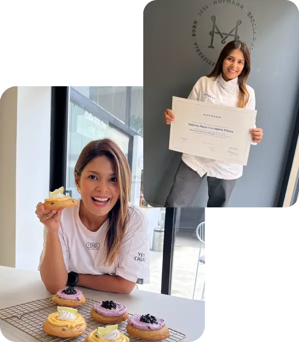 Me formé en Escribà Academy (Barcelona, 2017) y en la prestigiosa Escuela Hofmann (Barcelona, 2023), y desde entonces no he dejado de aprender, crear y compartir.